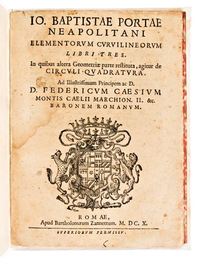 [Matematica/Geometria] Della Porta, Giovan Battista : Elementorum curvilineorum libri tres. Edito...
