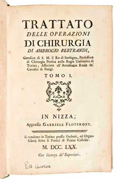 [Medicina-Chirurgia] Lotto di 2 opere : Bertrandi, Giovanni Ambrogio: Trattato delle operazioni d...