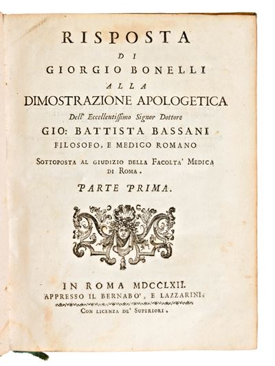 [Medicina] Risposta di Giorgio Bonelli alla dimostrazione apologetica del eccellentissimo signor ...