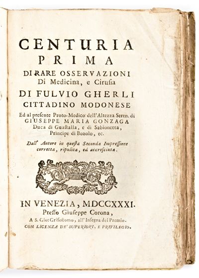 Gherli, Fulvio : Centuria prima di rare osservazioni di medicina, e cirusia. In Venezia, Giuseppe...