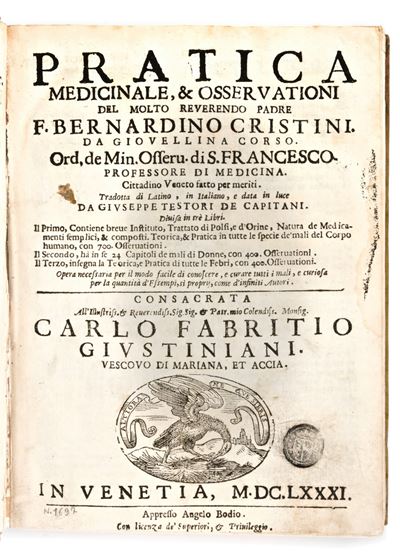 [Medicina] Cristini, Bernardino : Pratica medicinale, & osseruationi del molto reuerendo padre f....
