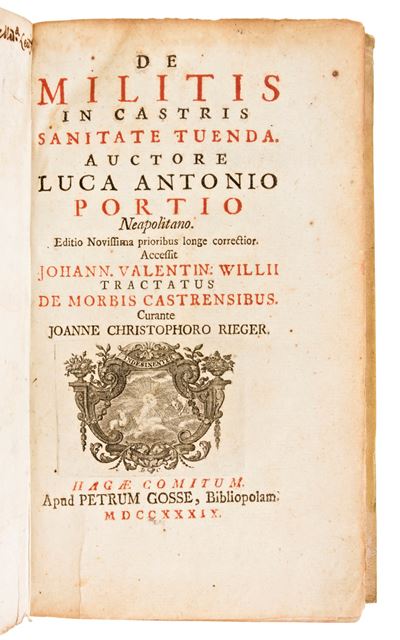 [Medicina Militare] Porzio, Luca Antonio : De militis in castris sanitate tuenda. Hagae Comitum, ...