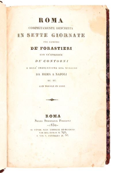 [ROMA/GUIDA] Roma compiutamente descritta in sette giornate per comodo de' forastieri con un'appe...