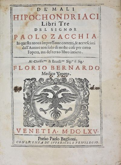 Zacchia, Paolo: DE' MALI HIPOCHONDRIACI LIBRI TRE DEL SIGNOR PAOLO ZACCHIA. IN QUESTA NUOUA IMPRE...