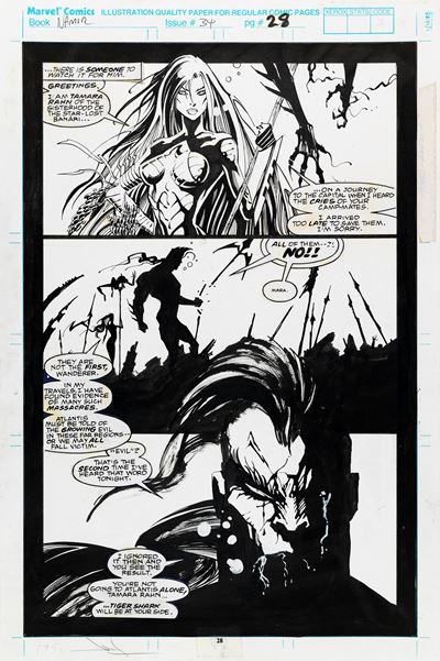 Tra i protagonisti di questa straordinaria collezione, spiccano nomi illustri della nona arte. I top lot includono una rarissima tavola di Frank Miller per The Spectacular Spider-Man e una pagina iconica del suo capolavoro Sin City. Non mancano opere storiche di John Buscema, con la copertina di King Conan n. 1, e strisce memorabili di Charles M. Schulz dai Peanuts del 1987. Inoltre, le tavole di Jack Kirby, Mike Mignola, John Romita Sr., Hal Foster e Mark Texeira arricchiscono ulteriormente questa vendita, rendendola un evento imperdibile per i collezionisti.