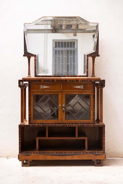 Credenza DéCo In Legno DI Noce E Palissandro Rio Con Specchio E Colonne Laterali