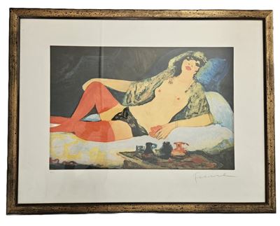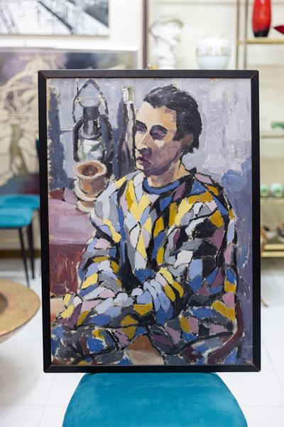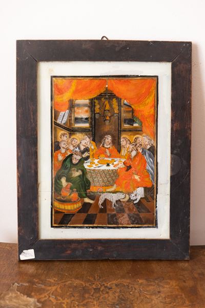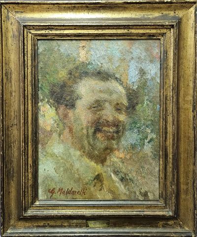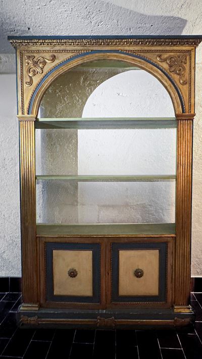 Lettino In Ferro Battuto Con Lumeggiature In Oro Antico E Dipinto Coevo Su Ferro