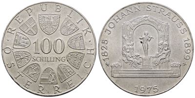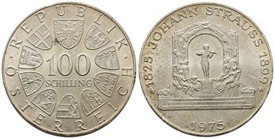 AUSTRIA. 100 Scellini 1975 "Johann Strauss". KM 2923; Ag; 24 Gr
