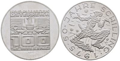AUSTRIA. 100 Scellini 1975 "50 Anni Dello Scellino Austriaco". KM 2925; Ag; 24 Gr