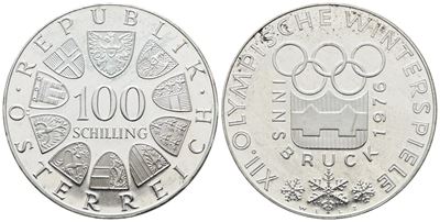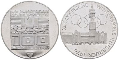 AUSTRIA. 100 Scellini 1976 "Olimpiadi Invernali Innsbruck". KM 2929; Ag; 24 Gr