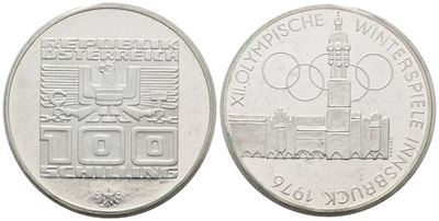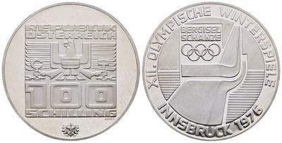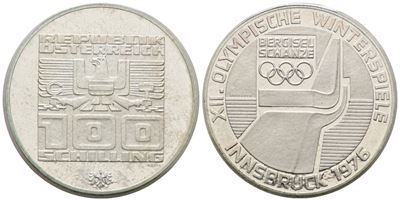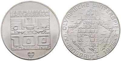AUSTRIA. 100 Scellini 1976 "Olimpiadi Invernali Innsbruck". KM 2928; Ag; 24 Gr