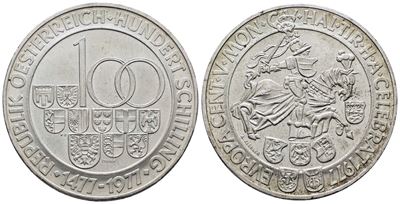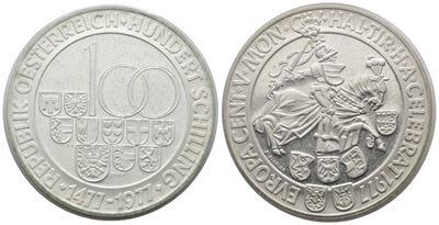AUSTRIA. 100 Scellini 1977 "500 Anni Della Zecca DI Hall In Tirolo". KM 2936; Ag; 24 Gr