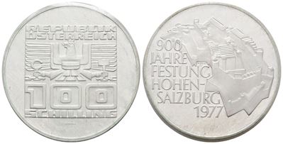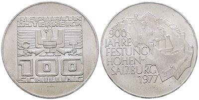 AUSTRIA. 100 Scellini 1977 "900 Anni Della Fortezza DI Salisburgo". KM 2935; Ag; 24 Gr