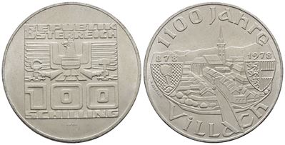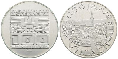 AUSTRIA. 100 Scellini 1978 "1100 Anni Città DI Villaco". KM 2940; Ag; 24 Gr