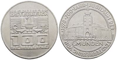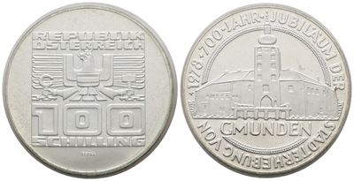 AUSTRIA. 100 Scellini 1978 "700 Anni Città DI Gmunden". KM 2938; Ag; 24 Gr