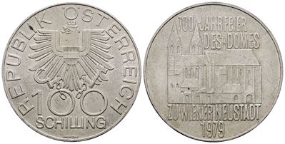 AUSTRIA. 100 Scellini 1979 "700 Anni Della Cattedrale DI Wiener Neustadt". KM 2942; Ag; 24 Gr