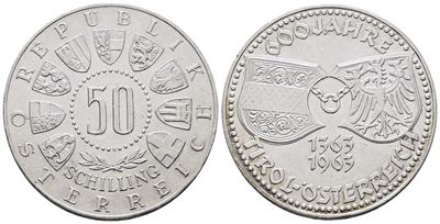 AUSTRIA. 50 Scellini 1963 "600 Anni Del Tirolo". KM 2894; Ag; 20 Gr