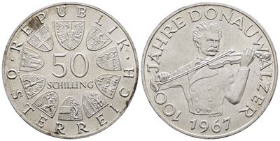 AUSTRIA. 50 Scellini 1967 "Valzer - Sul Bel Danubio Blu". KM 2902; Ag; 20 Gr