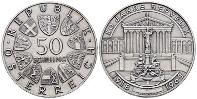 AUSTRIA. 50 Scellini 1968 "50 Anni Della Repubblica". KM 2904; Ag; 20 Gr