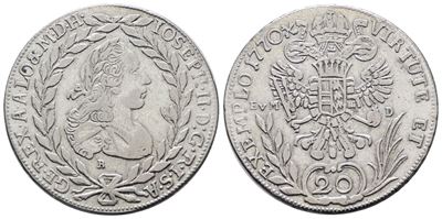 AUSTRIA. Giuseppe II (1765-1780). 20 Kreuzer 1770 B (Kremniz). KM 2067; Ag; 6,68 Gr