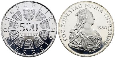 AUSTRIA. 500 Scellini 1980 "Bicentenario Morte DI Maria Teresa". KM 2949; Ag; 24 Gr