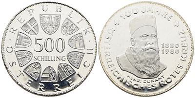 AUSTRIA. 500 Scellini 1980 "Centenario Della Croce Rossa Austriaca". KM 2950; Ag; 24 Gr