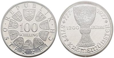 AUSTRIA. 100 Scellini 1977 "1200 Anni Abazia DI Kremsmusnster". KM 2934; Ag; 24 Gr