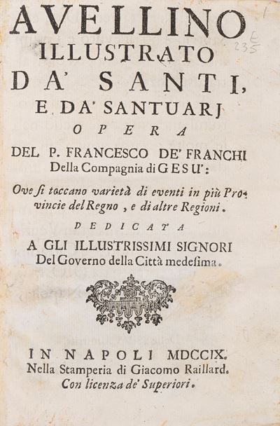 Avellino Illustrato Da' Santi, E Da' Santuarj Opera Del P. Francesco De' Franchi ... Ove Si Tocca...