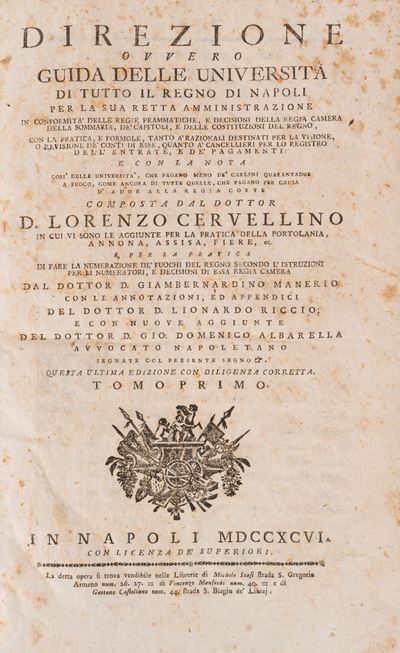 Direzione Ovvero Guida Delle Università DI Tutto Il Regno DI Napoli