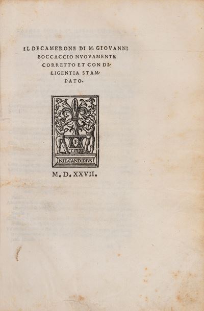 Il Decamerone DI M. G. B. Nuovamente Corretto Et Con Diligentia Stampato