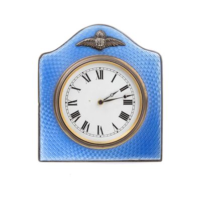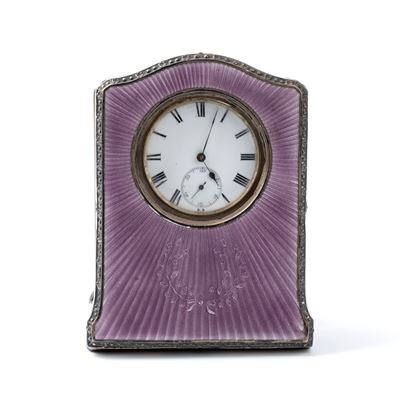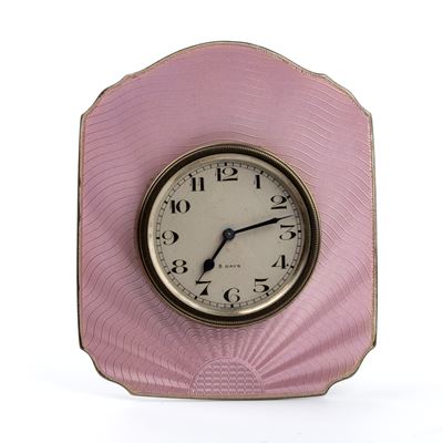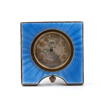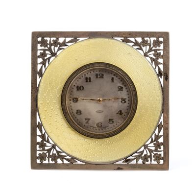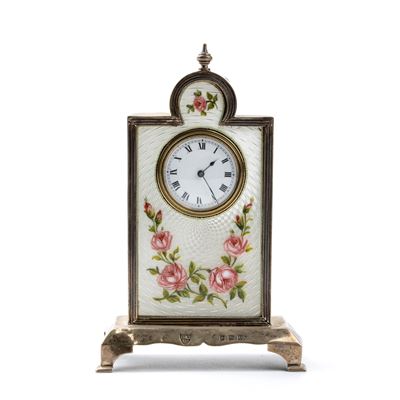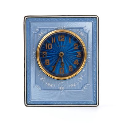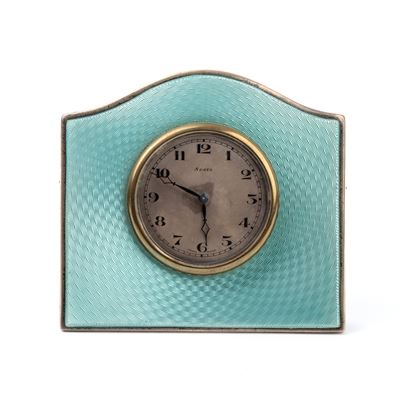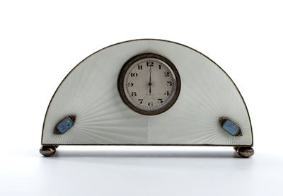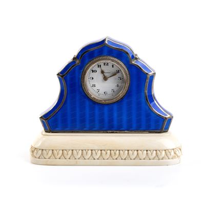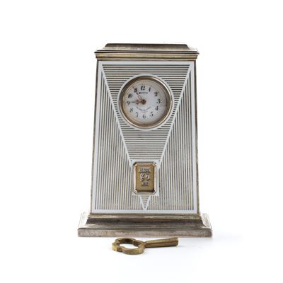 Orologio da tavolo Art Déco in argento, smalto guilloché e avorio