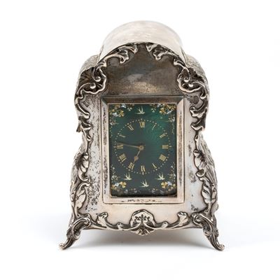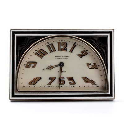 Orologio da tavolo Art Déco in argento e smalti con calendario