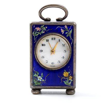 Orologio da tavolo Art Déco in argento, smalto cloisonné e avorio