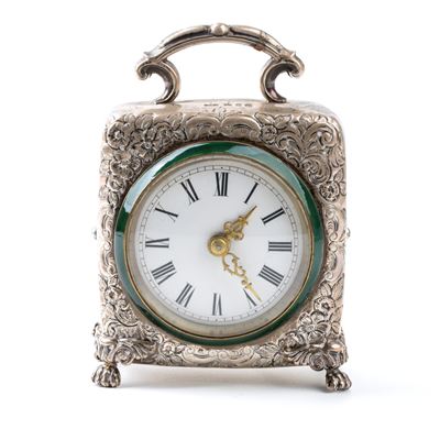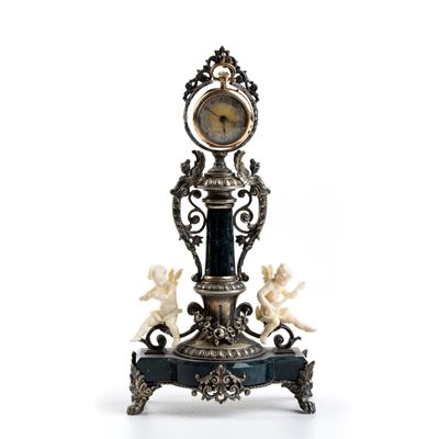 Orologio da tavolo in argento, quarzo rosa e avorio