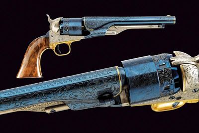 Revolver a luminello tipo Colt Dragoon con cassetta