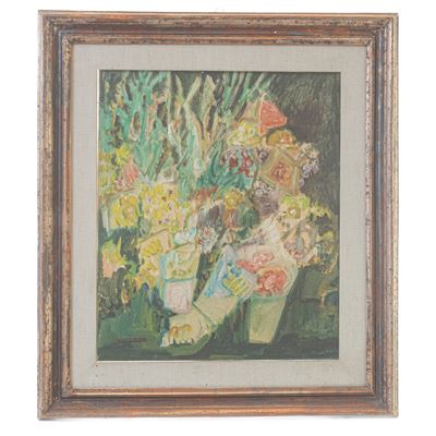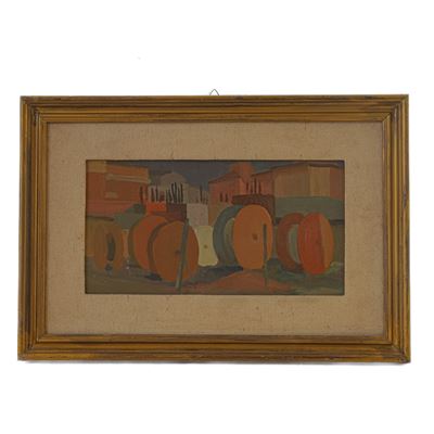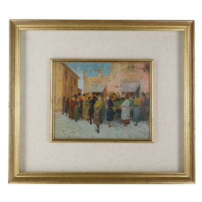 Popolane al mercato, coppia dipinti ad olio su tavola