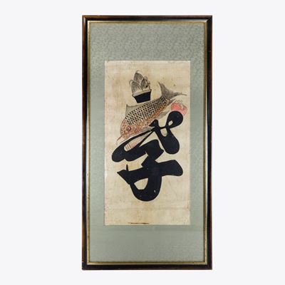 Carpa con ideogramma, disegno ad inchiostri su carta