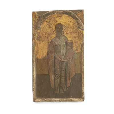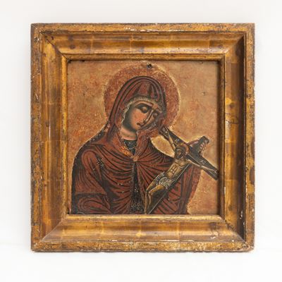 Icona lignea con scena della vita di Gesù ed angeli e santi