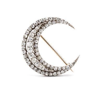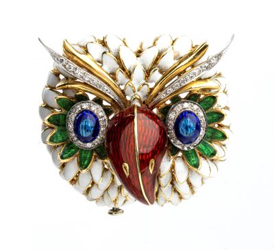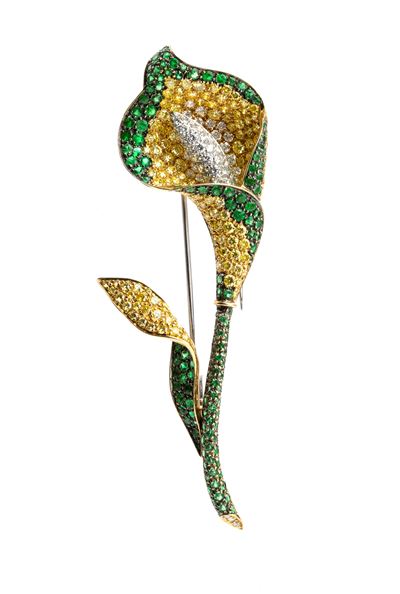 Spilla In Oro Con Diamanti, Corallo Mediterraneo E Turchese