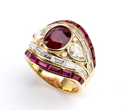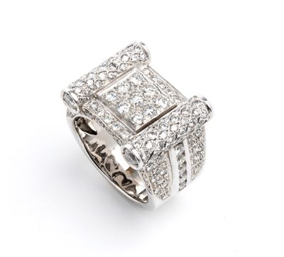 Anello Art DéCo In Platino, Oro E Diamante Con Certificato