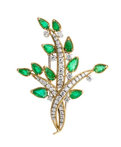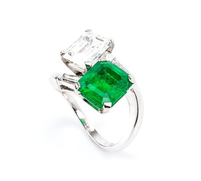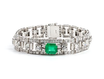 Bracciale Art DéCo In Platino Con Diamanti E Smeraldo Centrale