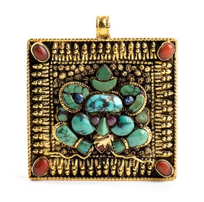 Pendente In Oro E Inserti In Corallo E Turchesi