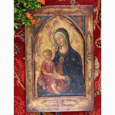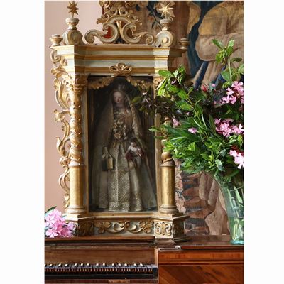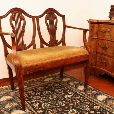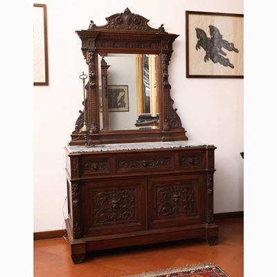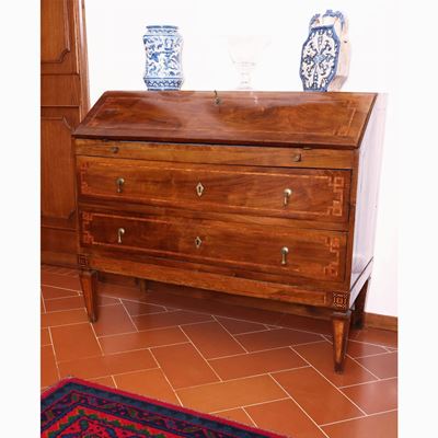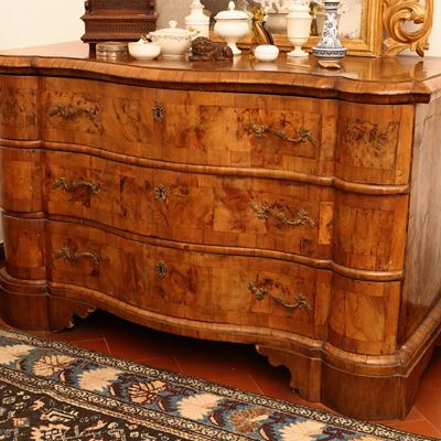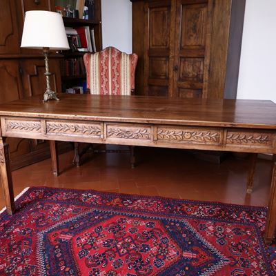 Monumentale Inginocchiatoio Da Centro Impiallacciato In Noce E Radica DI Noce E Tuia
