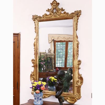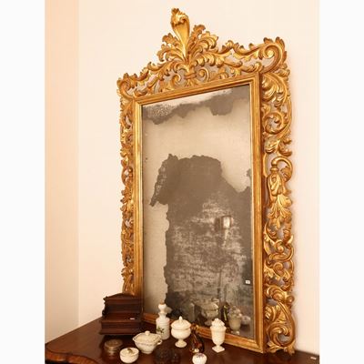 Specchiera Con Cornice In Legno Intagliato E Dorato