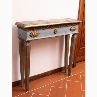Piccola Console In Legno Laccato Verde Acqua E Dorato