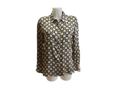 Camicia in seta fantasia bianca e nera