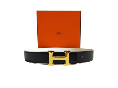 Hermès - Cintura in vitello reversibile nera/bianca