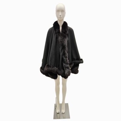 Mantella In Tessuto DI Lana Marrone Con Code DI Visone