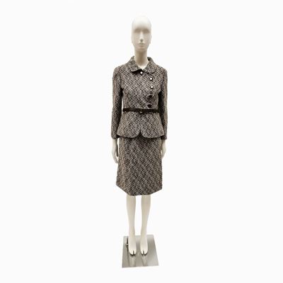Philippe Venet, Tailleur In Tessuto DI Lana Geometrico Bianco E Marrone
