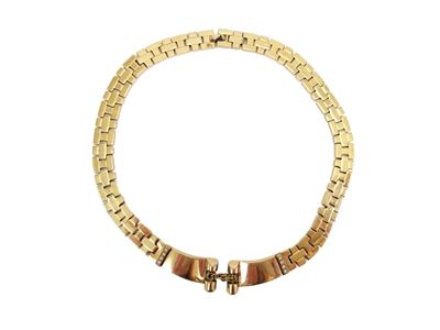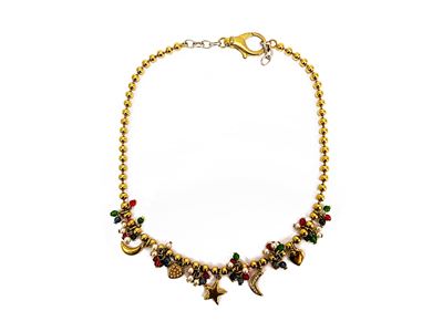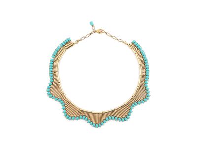 Collana semirigida in metallo giallo con pietre in pasta di turchese